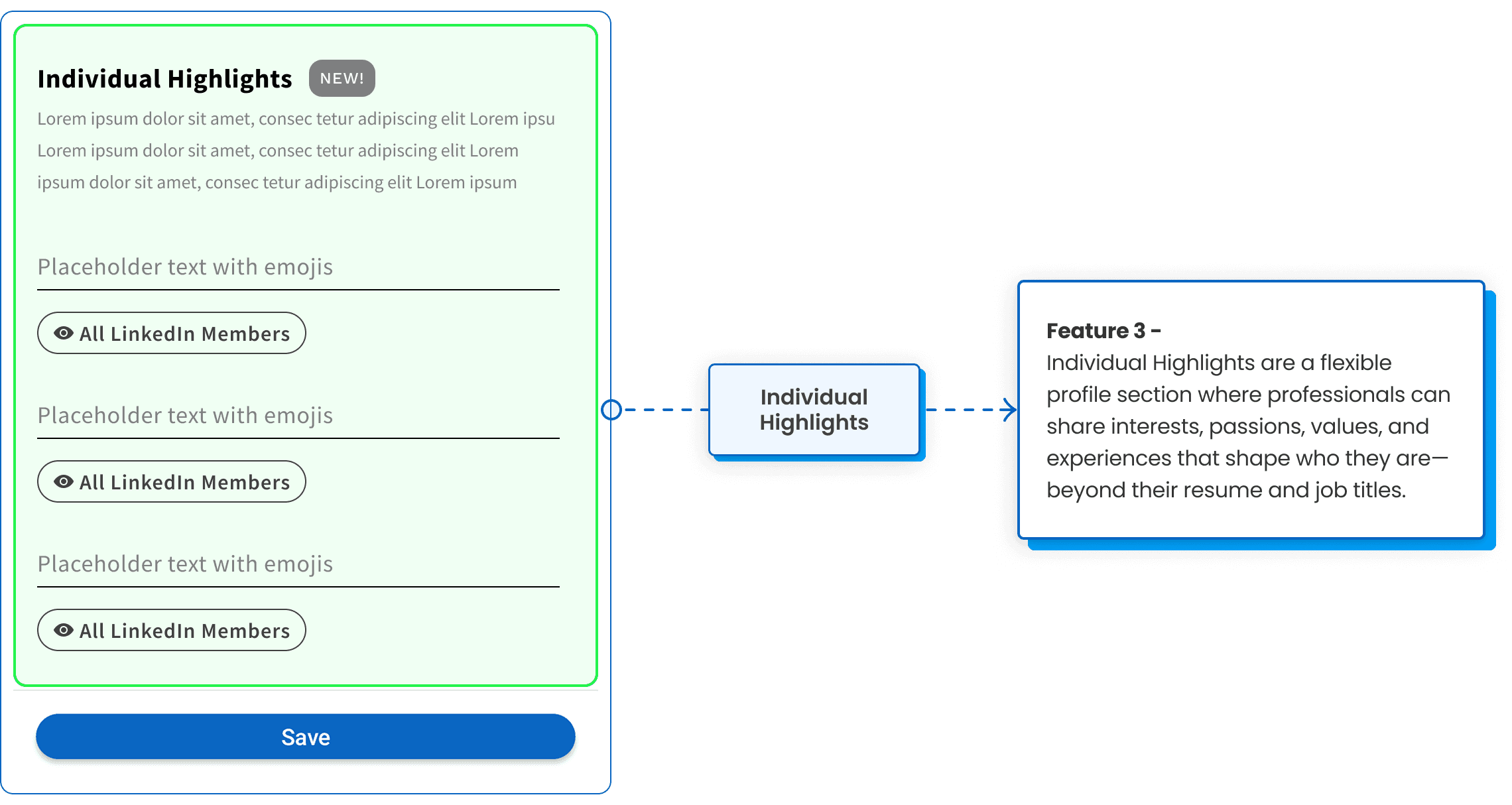 Dynamic visibility controls (e.g., show different highlights to recruiters vs. connections)