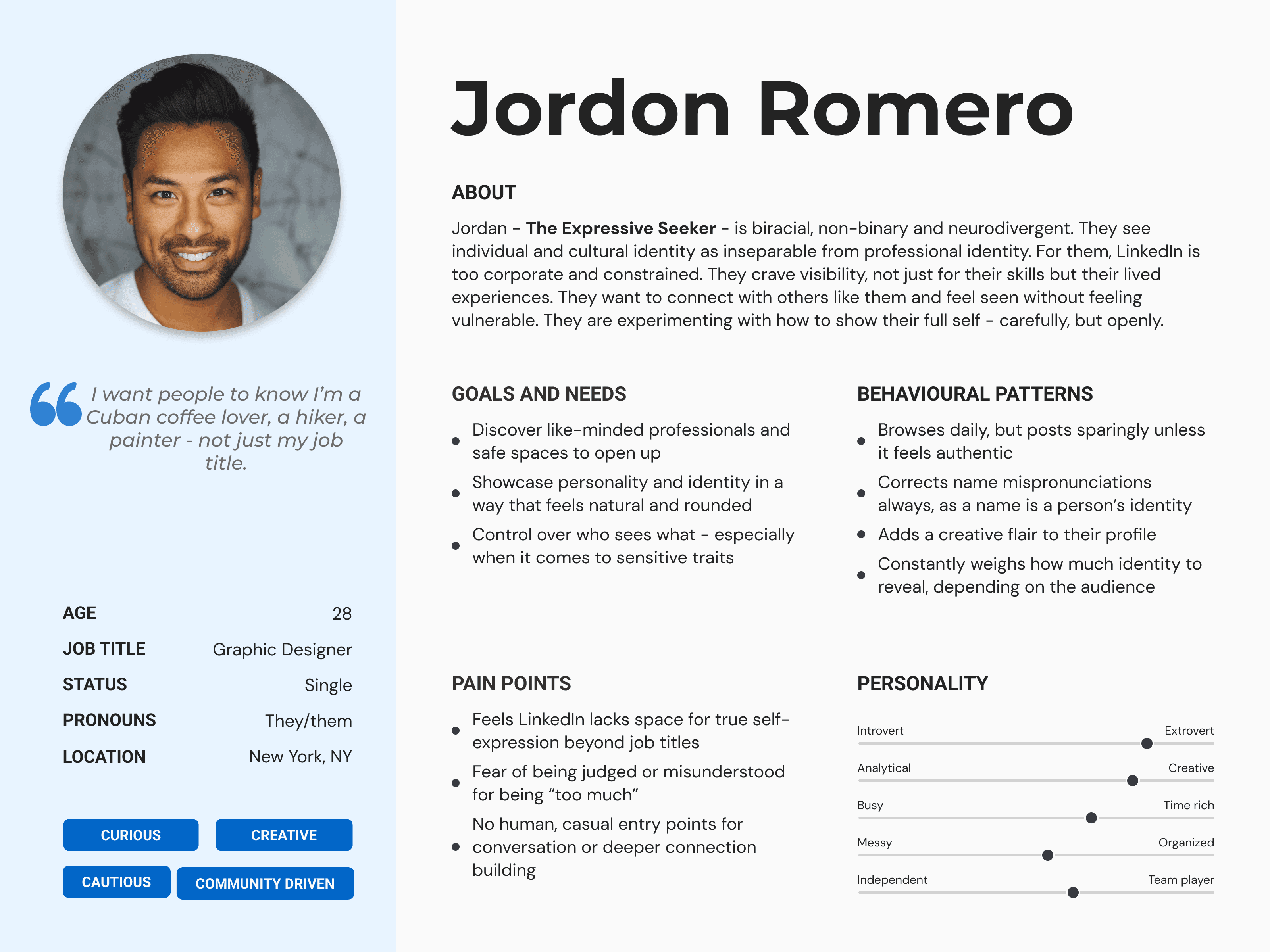 76% wanted to show more personality on LinkedIn but treated it as "strictly professional" - Validated the need, but revealed the tension.