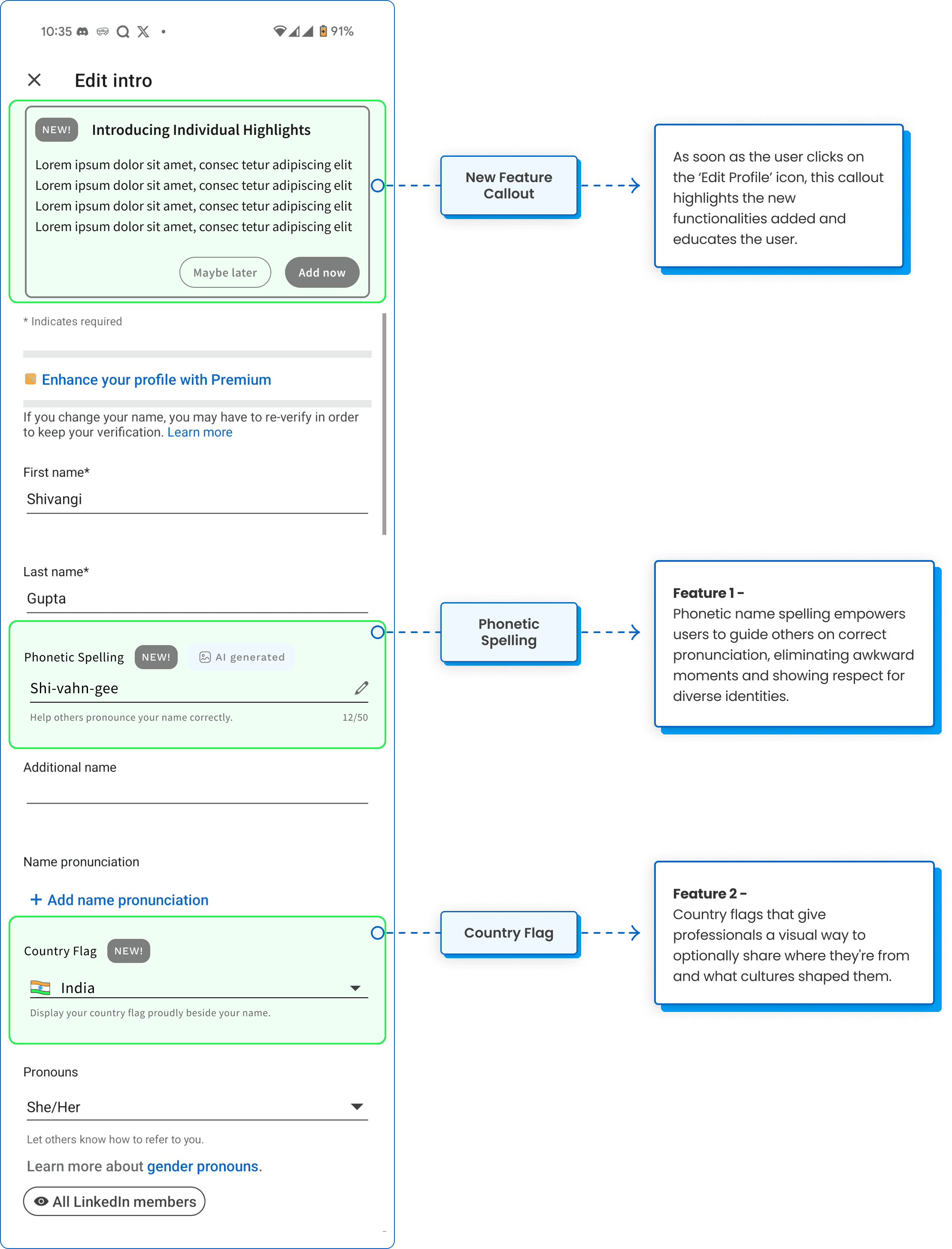 How might we empower immigrants and diverse professionals to proudly showcase their identity on LinkedIn, while creating a safe space for them and removing any workplace bias?